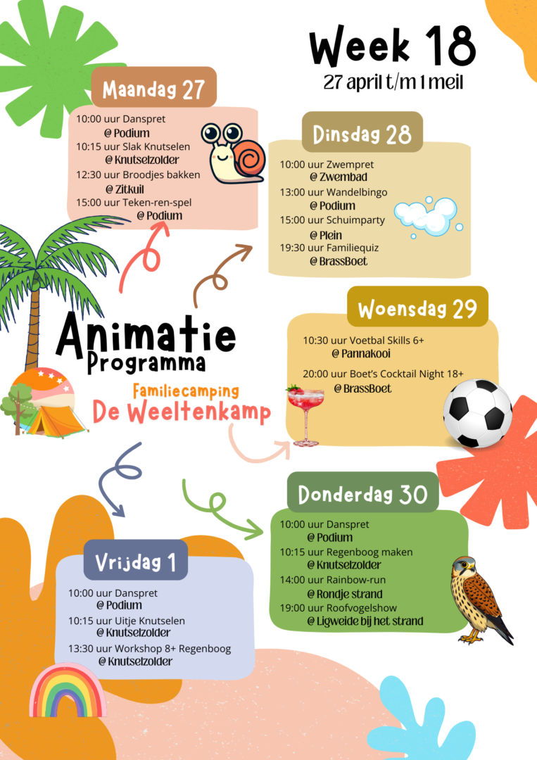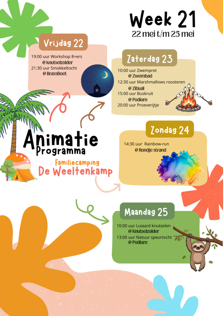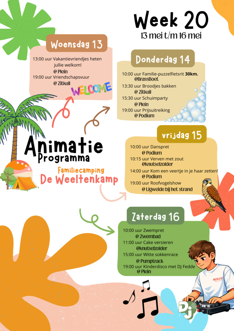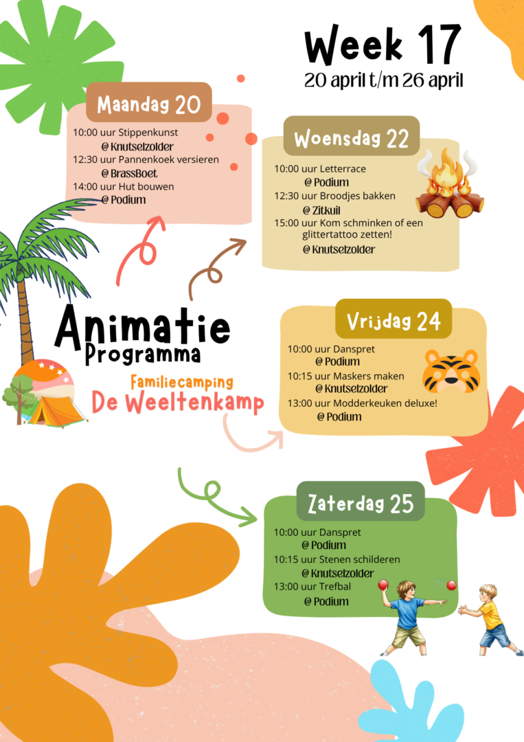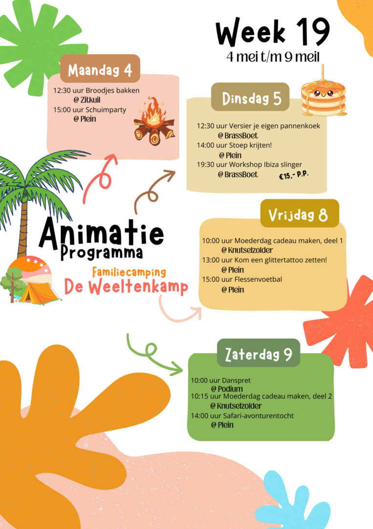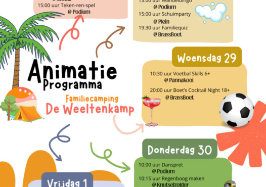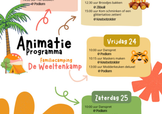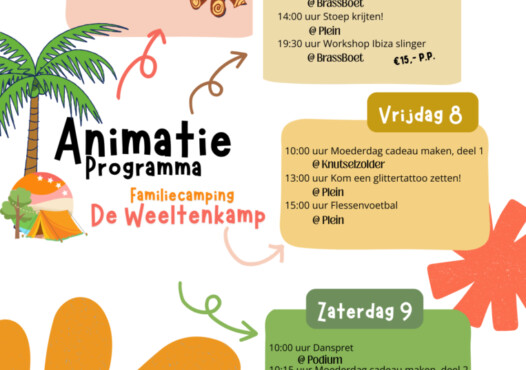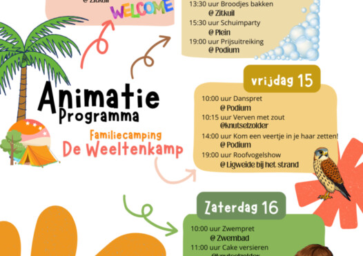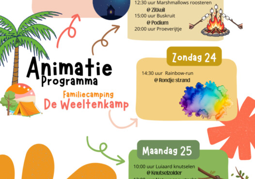Het kan zomaar zijn dat we tijdens jullie verblijf ineens een extra activiteit organiseren. Denk aan iets kleins, iets gezelligs of juist iets unieks en dat kondigen we natuurlijk aan op de camping.